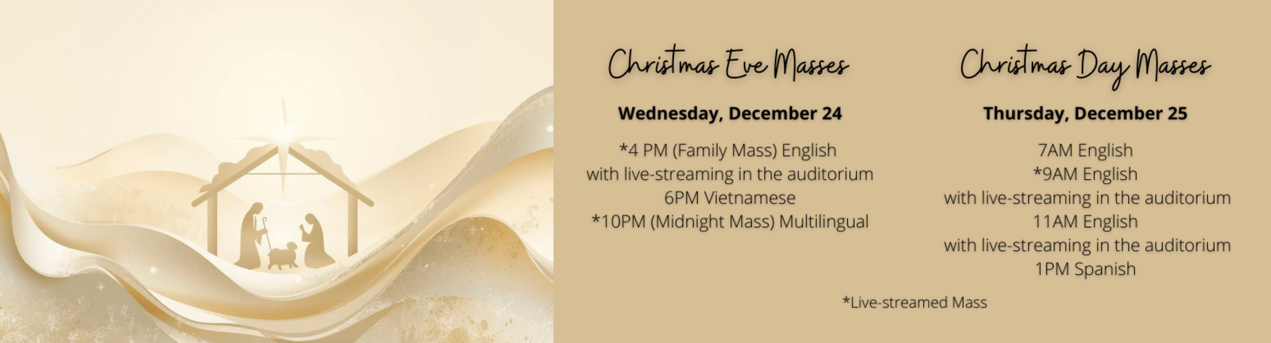 Those unable to attend Mass in person may tune in to our daily live-streamed Masses, Monday - Friday at 8 AM , Saturday at 4:30 PM (vigil Mass), Sunday at 9 AM and Sunday at 1 PM (Spanish). CLICK the headline above to access the YouTube Channel for all options, including special events.